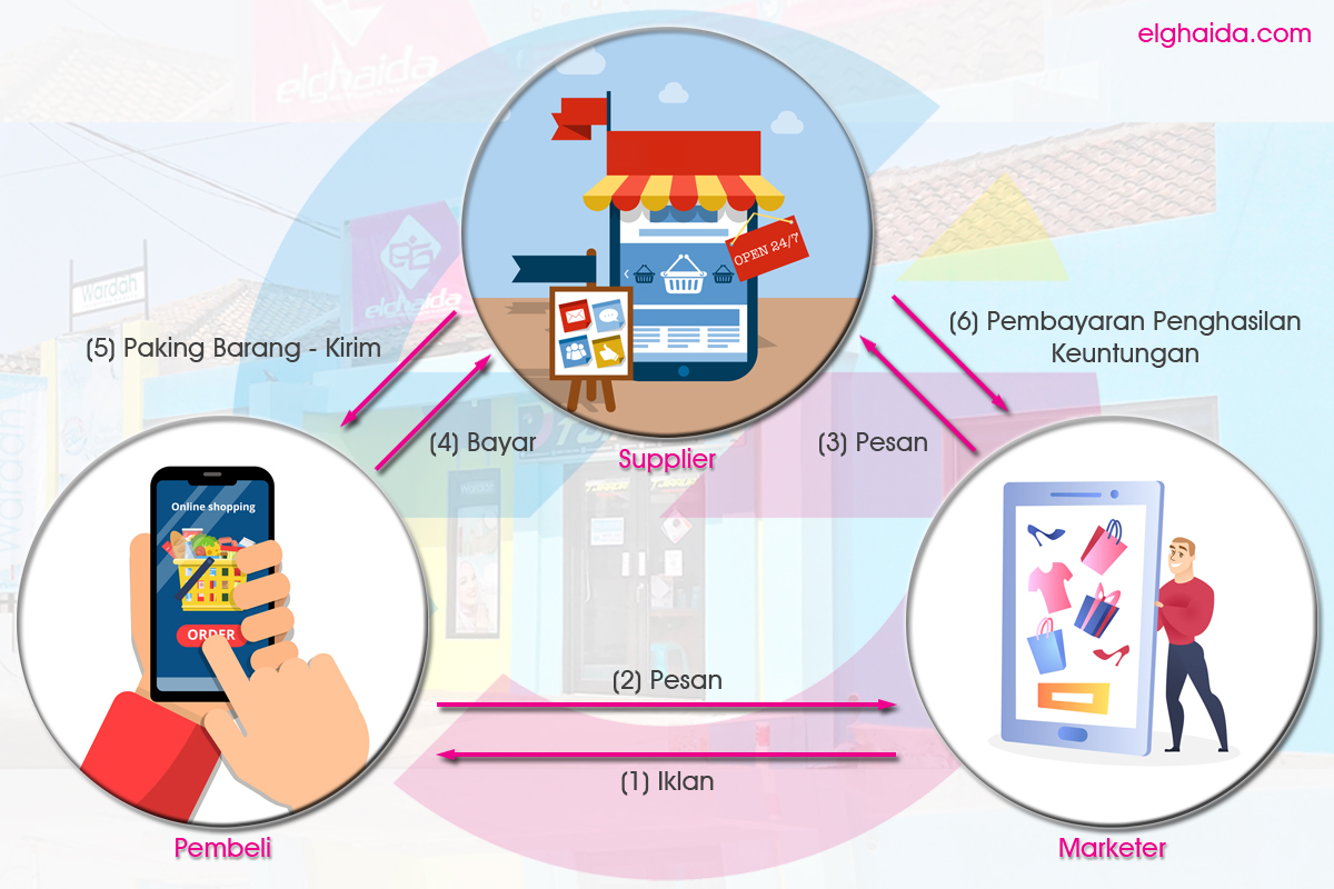 Ketika ada pembeli, Marketer akan memberitahukan kepada supplier atau produsen bahwa ada yang melakukan pemesanan produk dan menginstruksikan kepada pembeli untuk melakukan transaksi pembayaran kepada supplier. Kemudian supplier atau produsen akan mengirimkan langsung barang yang dipesan oleh pembeli dengan identitas pengirim adalah nama supplier itu sendiri, karena Marketer hanyalah sebagai penghubung/perantara pemasaran produk.